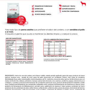 Formulado para perros con actividad media-alta de todas las razas con proteína de cordero
